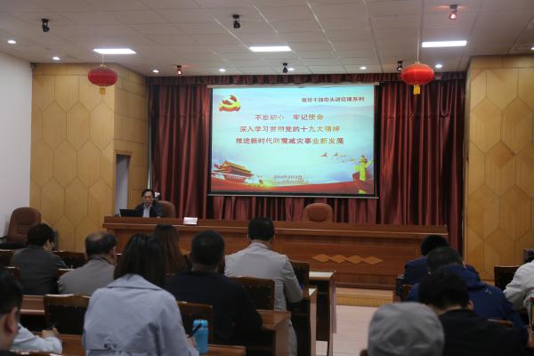 2018年5月9日上午,365的真正网址举办学习贯彻党的十九大精神主题党课,党组成员、副局长王海功以“不忘初心、牢记使命,深入学习贯彻党的十九大精神,推进新时代防震减灾事业新发展”为主题为全局干部职工解读十九大精神和地震事业发展情况,全局党员干部职工参加学习。